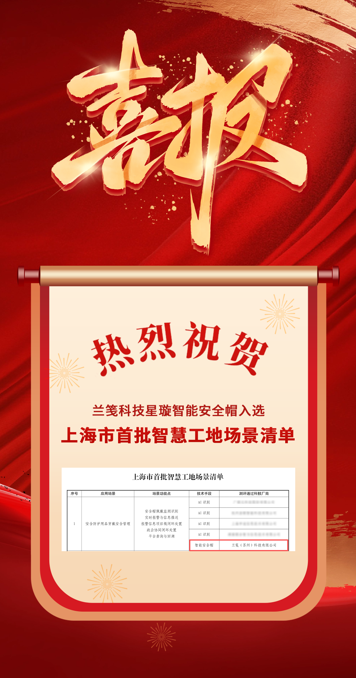 喜報(bào)!熱烈祝賀蘭箋科技星璇智能安全帽入選上海市首批智慧工地場(chǎng)景清單!